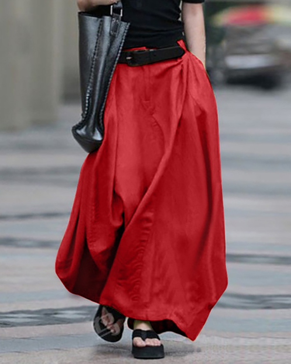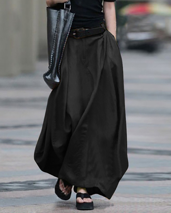 • Vintage Solid Color Side Pocket Zipper A-Line Skirt